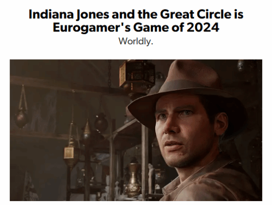 今日,外媒Eurogamer宣布将《夺宝奇兵:古老之圈》评为2024年年度最佳游戏。