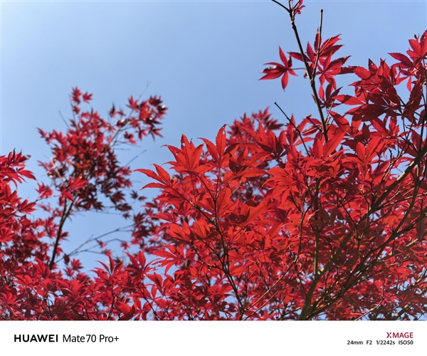在实际拍摄中,华为Mate 70 Pro+的红枫原色影像系统表现令人惊艳。在光线复杂的环境中,其拍摄效果更接近人眼所见,色彩饱满而不失真。例如,拍摄光线下的鸡爪槭时,红枫原色影像系统能够清晰展现鸡爪槭树叶的红色色彩层次,颜色自然且富有层次感。