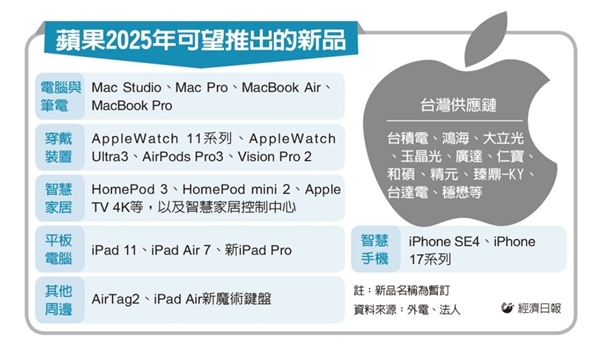 此外,AirTag 2、Mac Studio、Mac Pro、MacBook Pro、新iPad Pro、Apple Watch 11系列、Apple Watch Ultra 3、AirPods Pro 3、Vision Pro 2等产品也将在下半年发布。