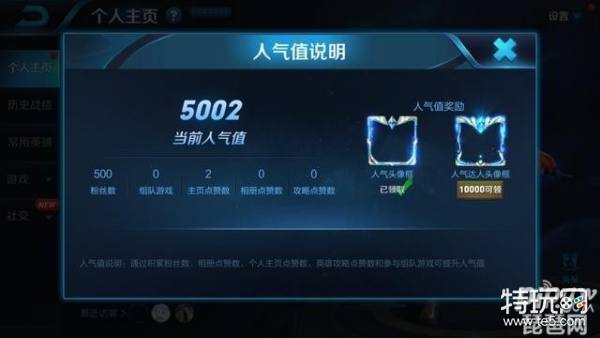 以上便是王者荣耀人气值提升和增加方法,大家可别忘记积累人气值后兑换人气头像框和人气达人头像框!更多最新游戏资讯请关注王者荣耀专区。