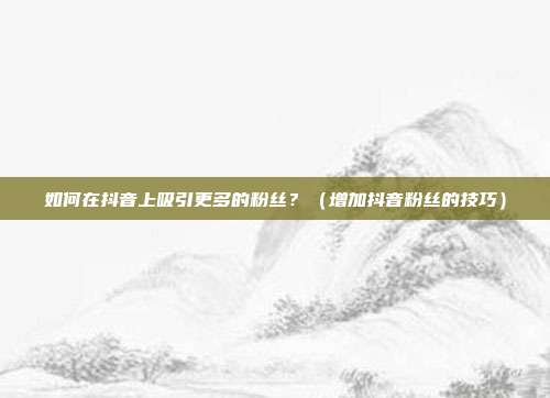 在抖音上吸引更多的粉丝并不是一件容易的事情,需要不断努力和尝试。制作高质量的内容,与粉丝互动,利用热门音乐和挑战,定期更新内容,以及利用其他社交媒体平台,都是增加粉丝数量的有效方法。希望以上的建议可以帮助到大家。