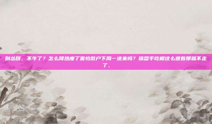 别怂呀,不牛了?怎么降热度了害怕散户下周一进来吗?操盘手吃相这么难看那就不走了,