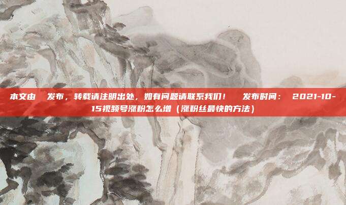 本文由 发布,转载请注明出处,如有问题请联系我们! 发布时间: 2021-10-15视频号涨粉怎么增(涨粉丝最快的方法)