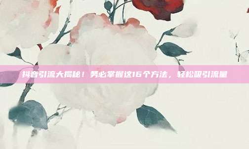 通过以上16个抖音引流方法,相信您可以在抖音平台上实现有效引流,吸引更多用户的关注和参与,提升账号的影响力和曝光度。祝您在抖音平台上取得优异的成绩!