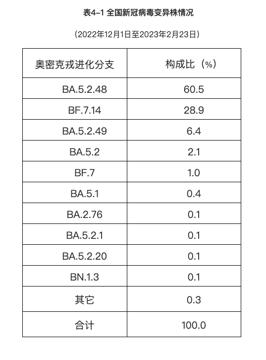 表4-1全国新冠病毒变异株情况